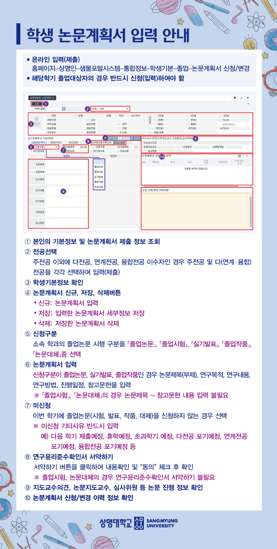 - 졸업논문은 졸업시험으로 대체한다.